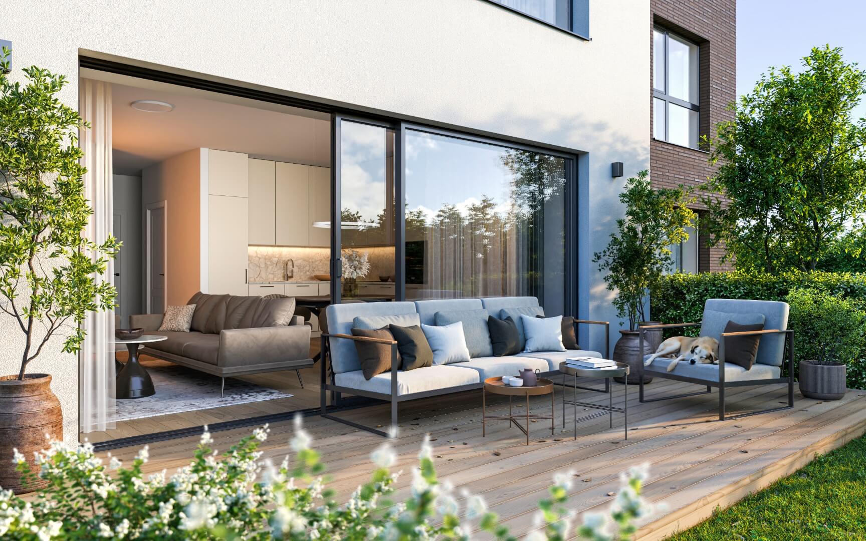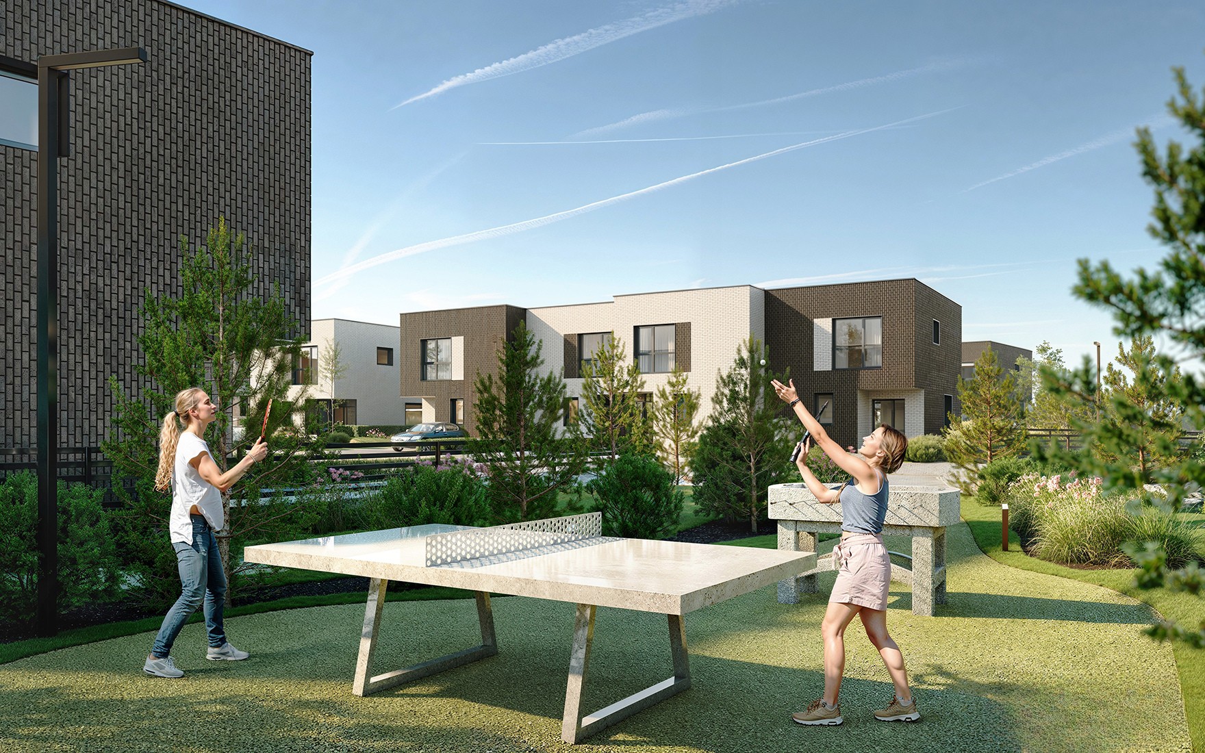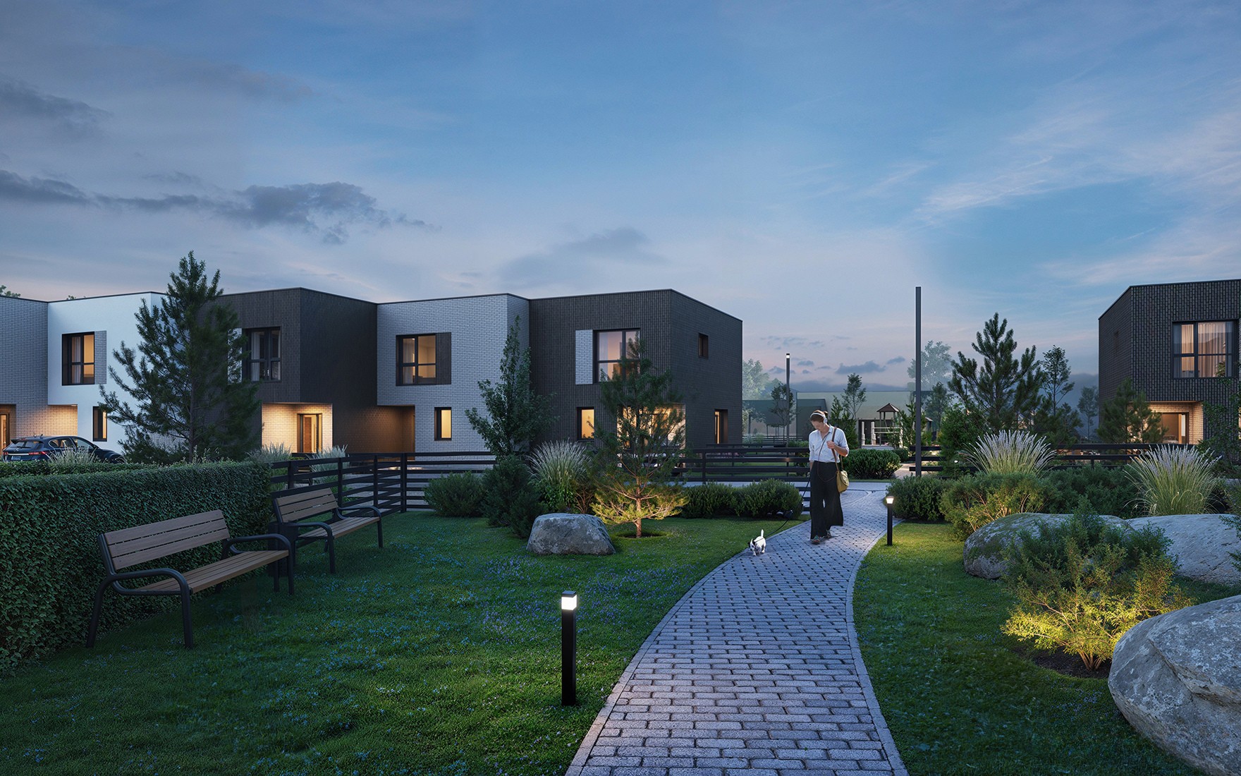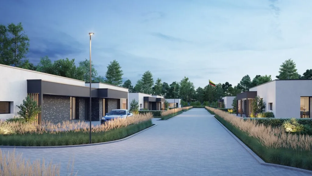 Žaliąjį kursą atitinkantys A++ energinio efektyvumo klasės būstai išdėstyti saugiai aptvertoje, apželdintoje ir apšviestoje teritorijoje. Kiekvienas būstas džiugina erdvia terasa ir nuosavu kiemeliu. Patogiai suprojektuoti dviaukščiai 100 m2 būstai aprūpinti miesto komunikacijomis.